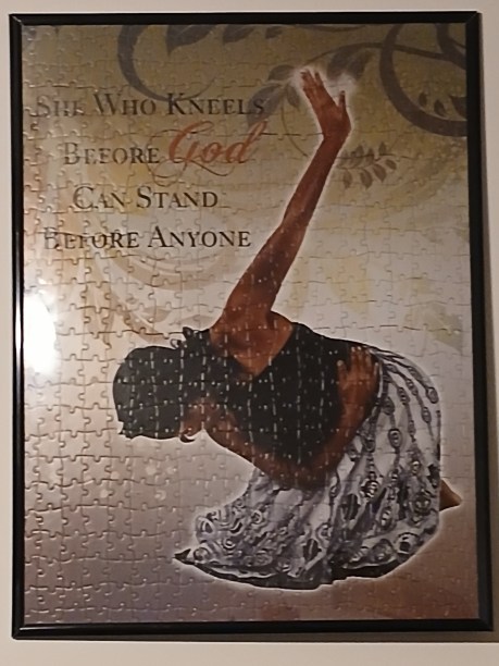 I put this jigsaw puzzle together a few years ago, placing the framed picture behind my desk. A few days ago I moved it so it is on the wall across from my reclining chair,nothing happens by accident or coincidence. I see the picture when I am sitting in my chair or in the front room. It reminds me of Matthew 6:33, seek first the Kingdom of God and His righteousness.